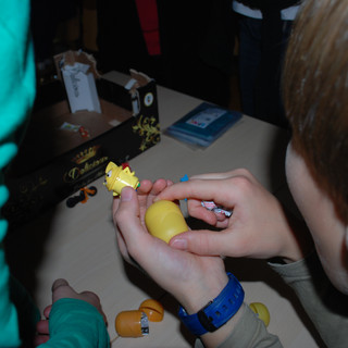 Po šoli smo se v petek ob štirinajsti uri odpravili v Fieso, kjer smo preživeli vikend. Dokončevali smo projekte, izboljševali robote ter delali na vrednotah. Najprej smo delali, nato so nas mentorji presenetili in skrili Kinder jajčka. Da bi se sladkali s čokolado?! Ne!!! Na preizkušnji so bile naše vrednote. Igračkam, ki smo jih dobili, smo se odpovedali, da smo jih lahko reciklirali v naše WC tarče.